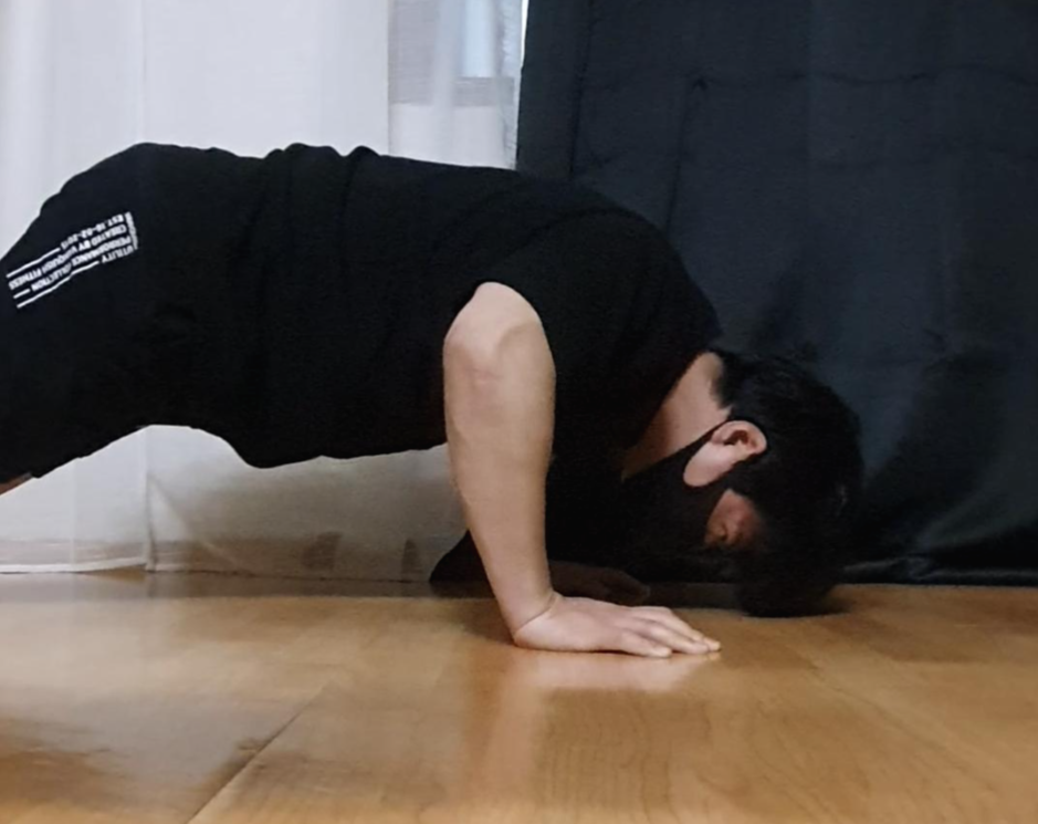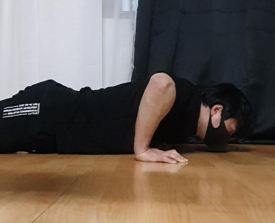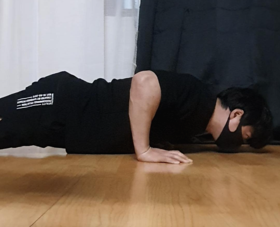 최대한 집중한 상태에서 푸시업을 수행합니다.