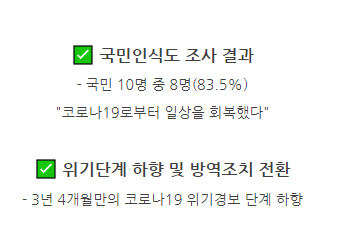 2019년 12월부터 시작된 코로나의 공포가 3년 6개월간 이어지다가, 처음 격리기간 14일, 그 이후 7일까지 낮춰졌다가 드디어 3년 반 만인 2023년 작년 6월 1일 이후 정부에서 격리기간을 7일에서 5일로 공표했으며, 이 마저도 이제는 필수가 아닌 권고사항으로 변경되었죠.