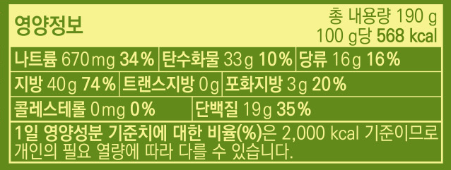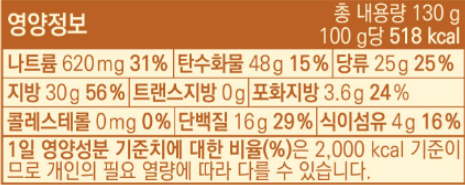 제가 먹은 와사비맛은 130g짜리를 샀는데, 거의 한 봉지에 700kcal가 넘습니다. 견과류 자체가 불포화지방산이라서 칼로리가 낮지 않은데, 이렇게 맛있게 제조된 제품이 생아몬드에 비해서 칼로리 훨씬 높은 건 어쩔 수 없을 것 같습니다. 그래서 운동하실 때, 더군다나 다이어트하실 때는 제어하지 않고 드시면 높은 칼로리 때문에 방해가 될 수도 있습니다. 때문에 개개인의 취향과 다이어트 목적에 따라 다르겠지만, 드시더라도 양은 딱 적정량만! 너무 힘든 식단 중간에 그래도 맛있는 견과류로 영양과 맛을 챙기시면서 드시면 좋을 것 같습니다.