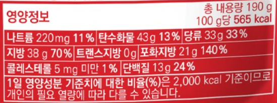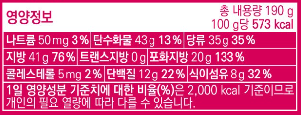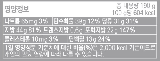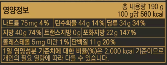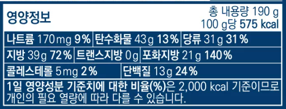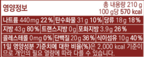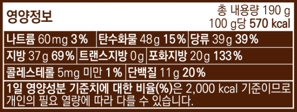 - 헤이즐넛 봉봉 (100g에 573kcal)